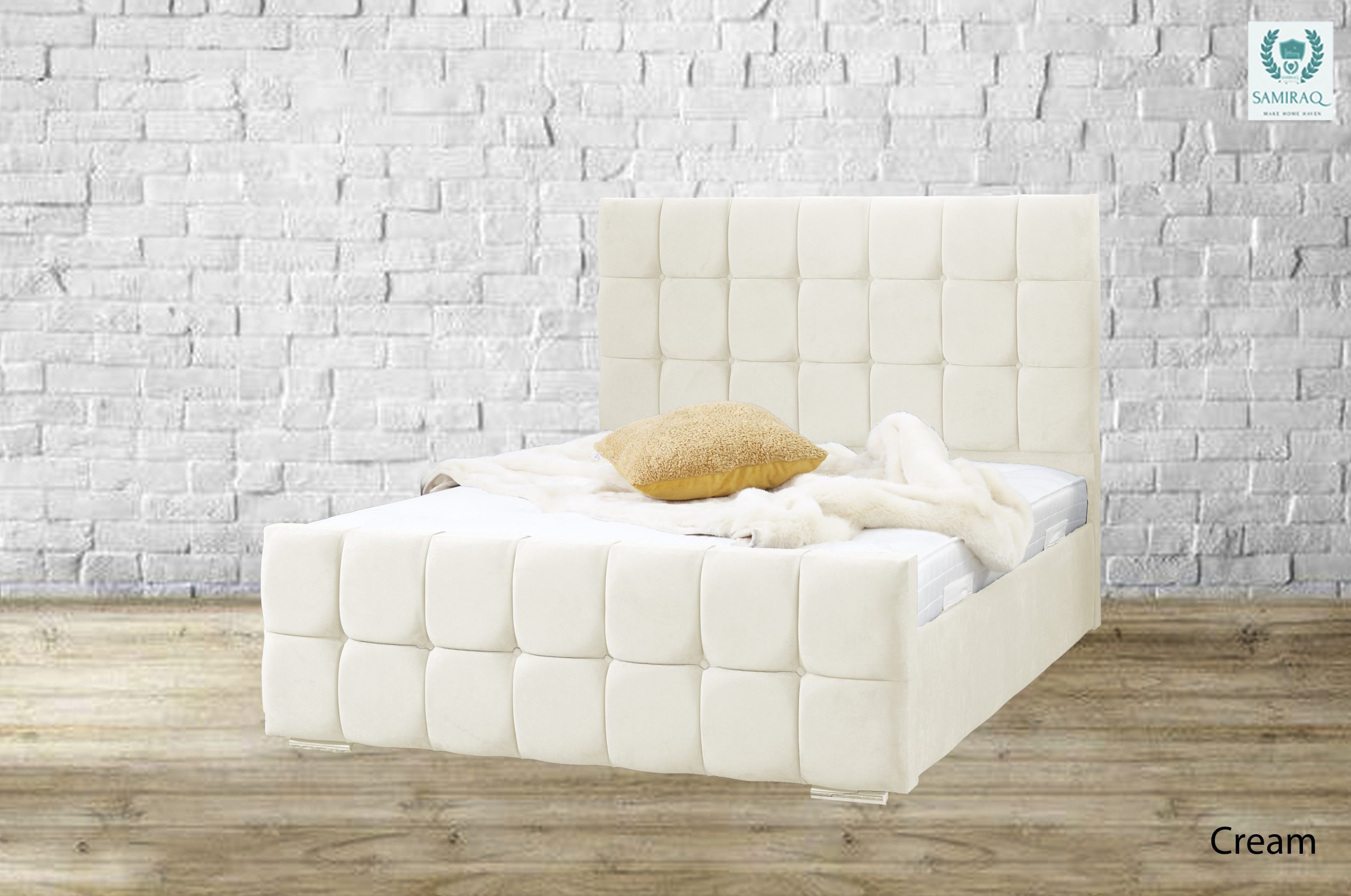 Enjoy your night’s sleep with the luxurious Cube Bed. Crafted with plush velvet and a custom design to meet your needs. With fire resistance and a chrome feet-solid board base, the bed proves its indestructibility.