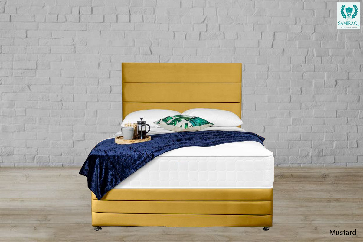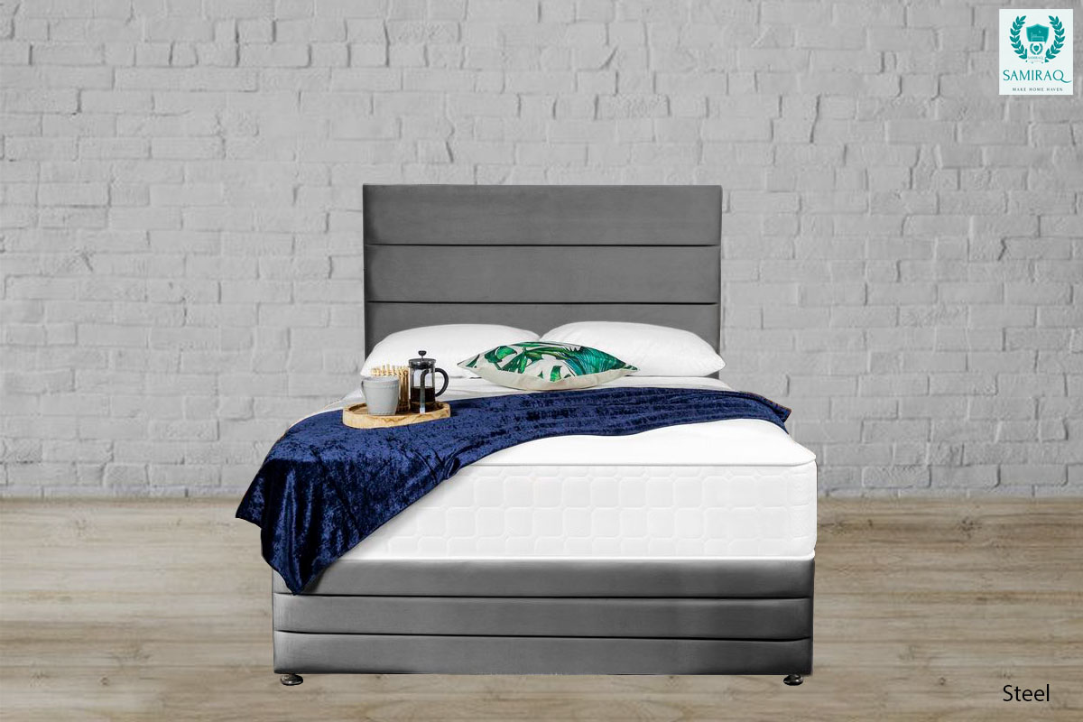 Enjoy your night’s sleep with this Bed. Crafted with plush velvet and a custom design to meet your needs. With a chrome feet-solid board base, the bed proves its indestructibility.