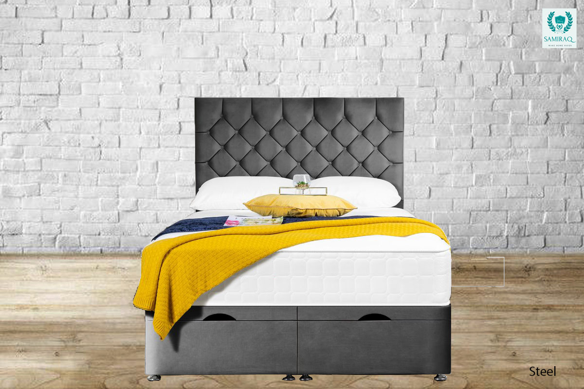 Enjoy your night’s sleep with the luxurious Monaco Bed. Crafted with plush velvet and a custom design to meet your needs. With fire resistance and a chrome feet-solid board base, the bed proves its indestructibility.