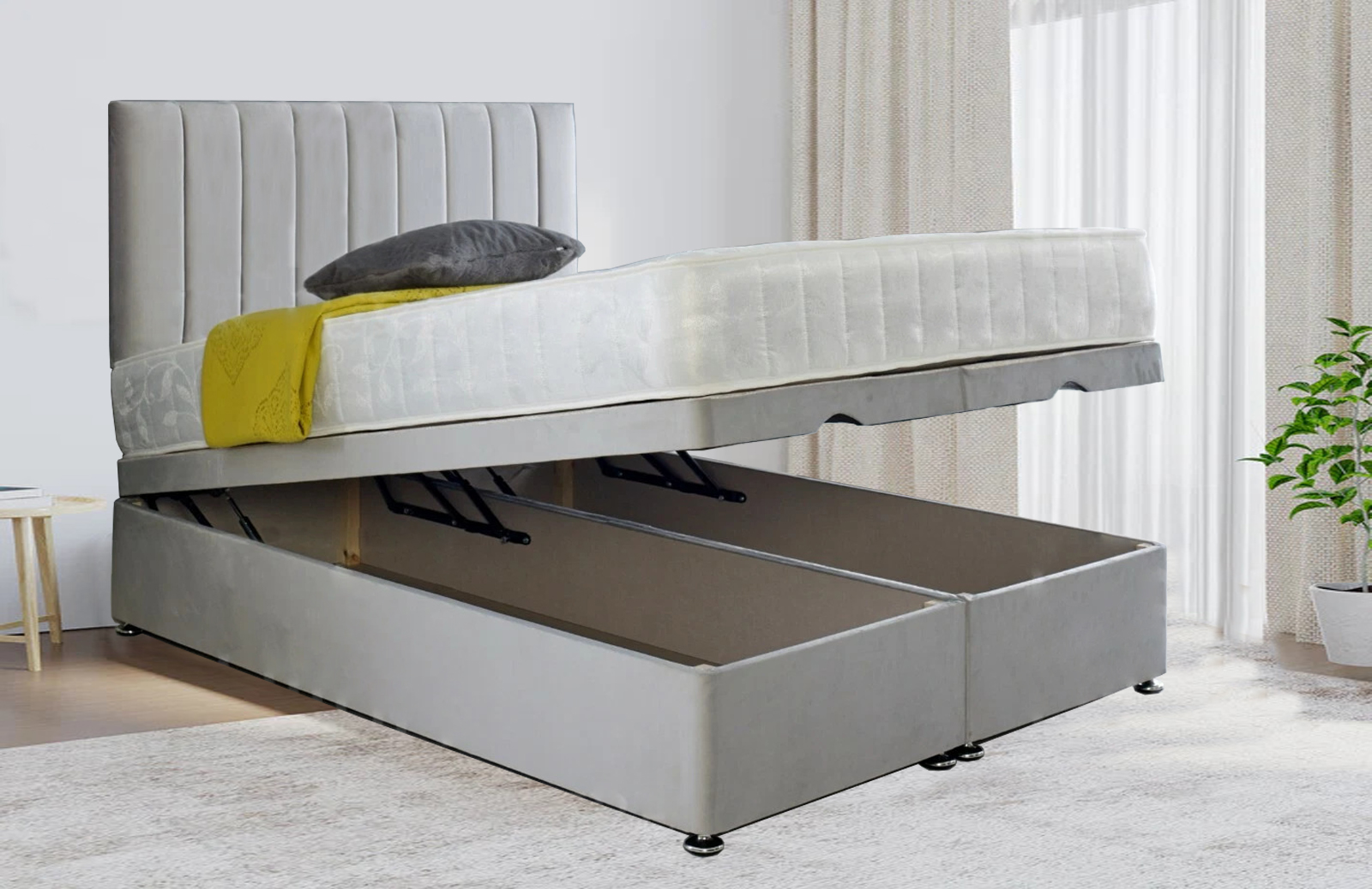 Enjoy your night’s sleep with this Bed. Crafted with plush velvet and a custom design to meet your needs. With a chrome feet-solid board base, the bed proves its indestructibility.