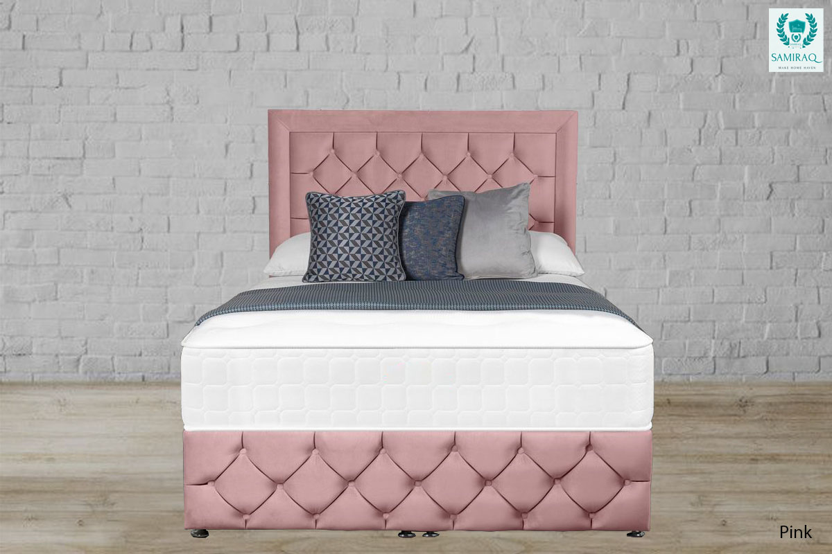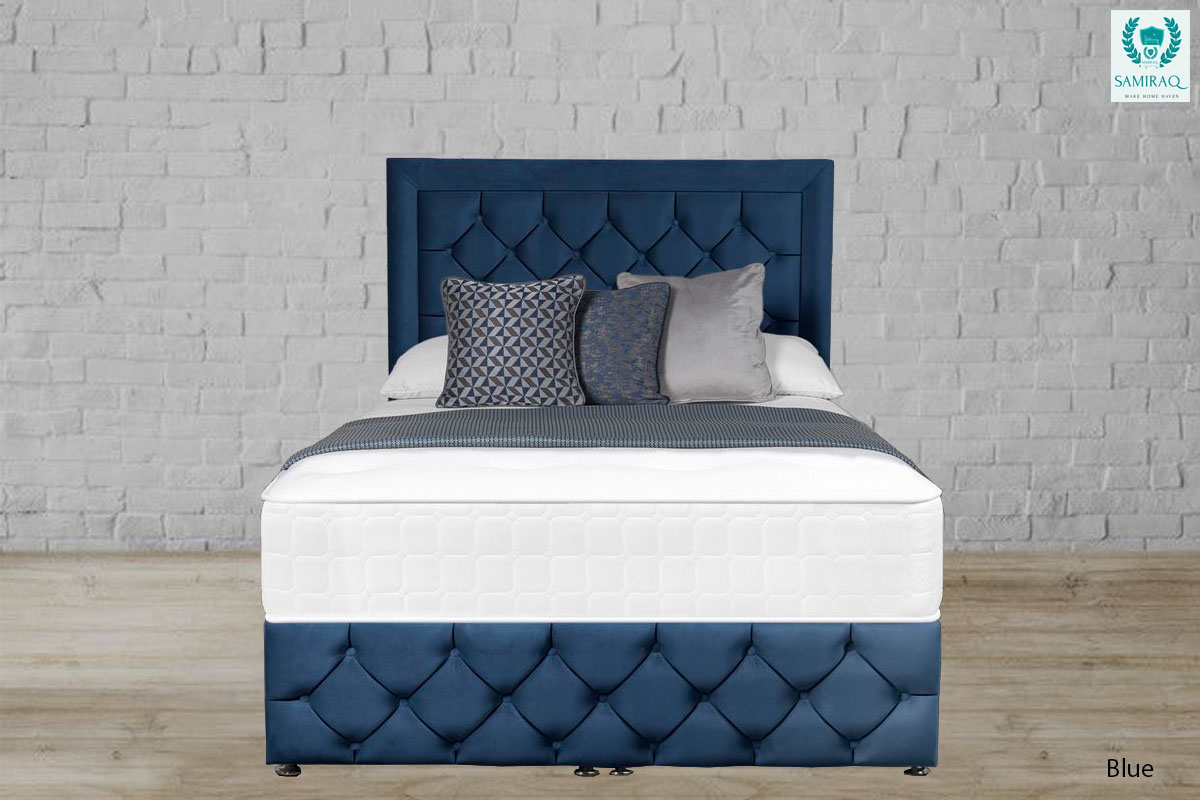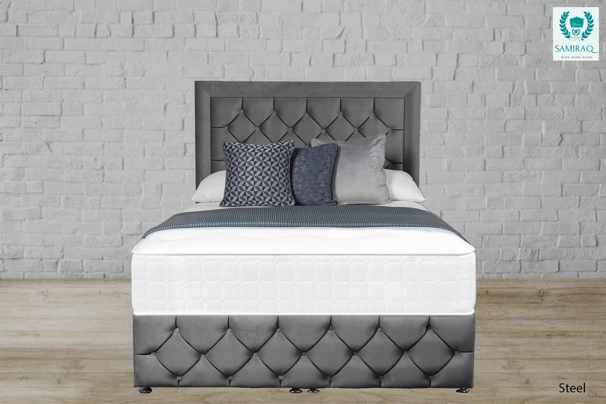 Enjoy your night’s sleep with this Bed. Crafted with plush velvet and a custom design to meet your needs. With a chrome feet-solid board base, the bed proves its indestructibility.
