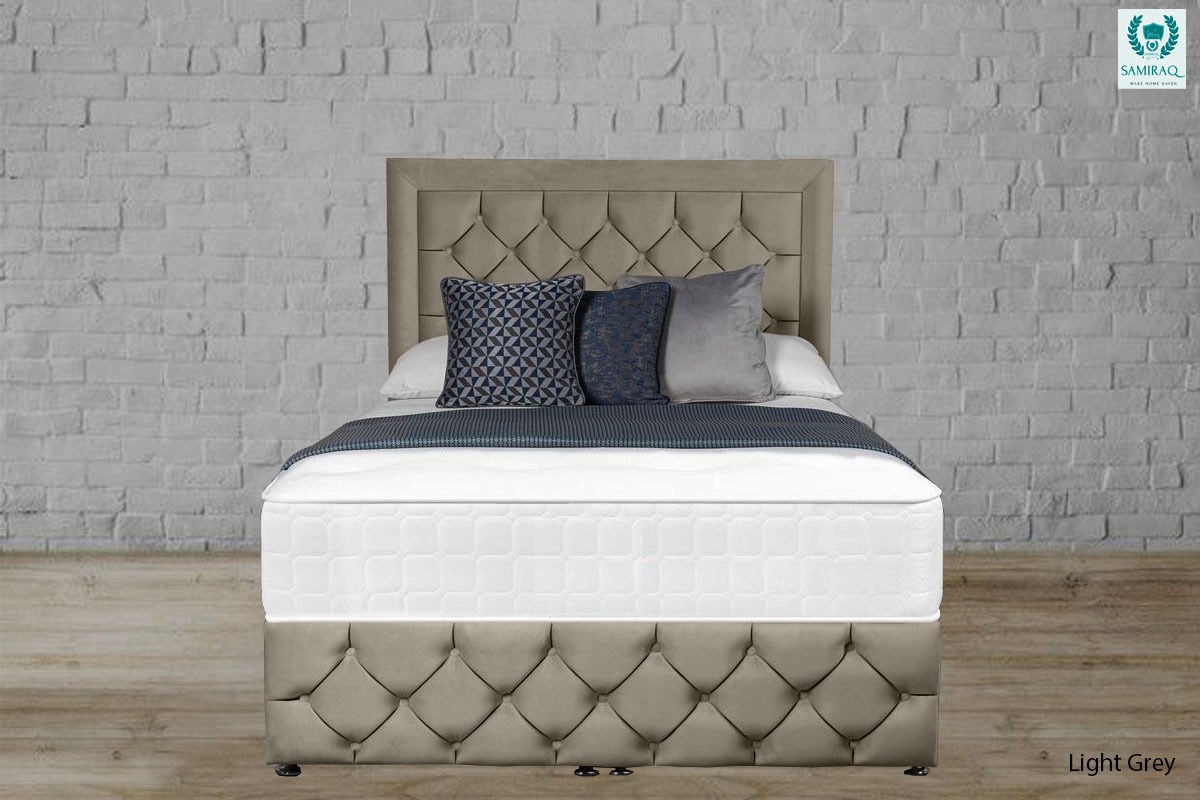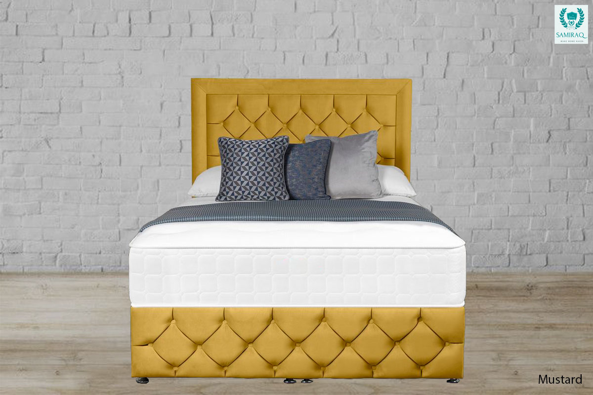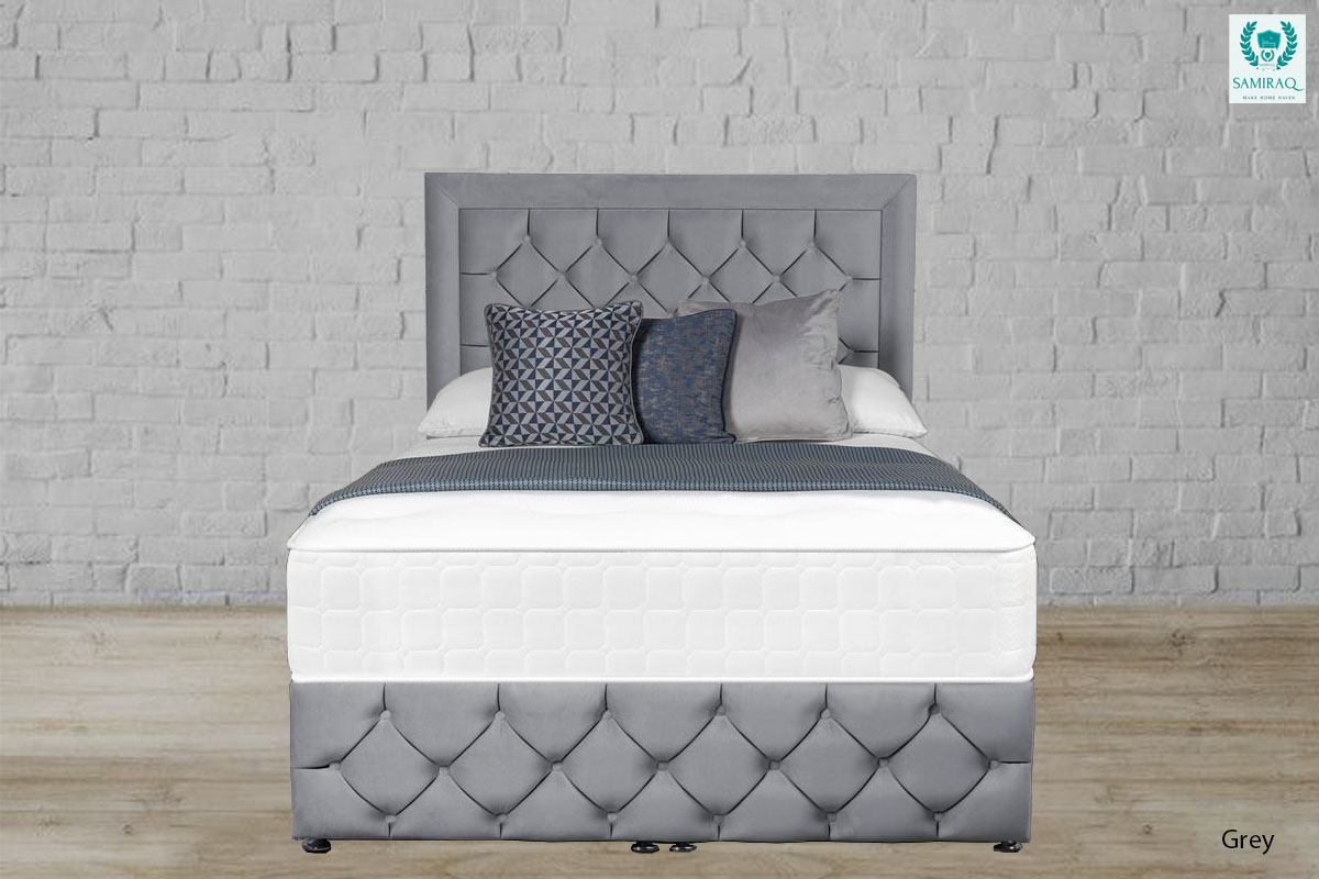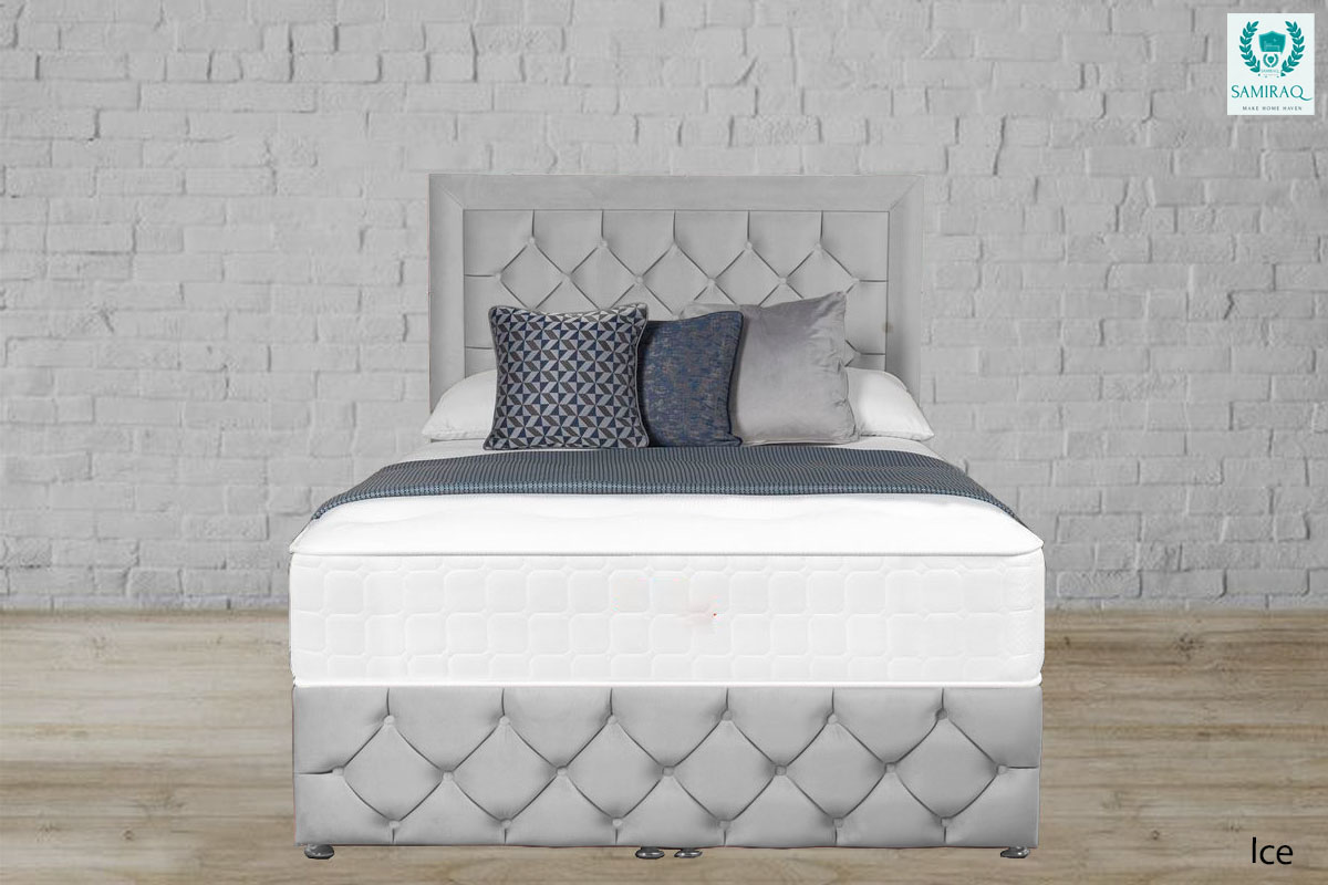 Enjoy your night’s sleep with this Bed. Crafted with plush velvet and a custom design to meet your needs. With a chrome feet-solid board base, the bed proves its indestructibility.