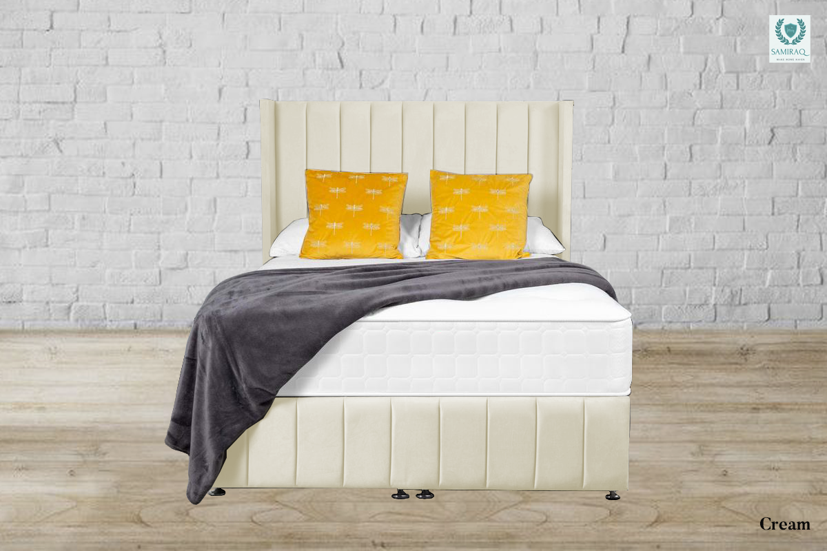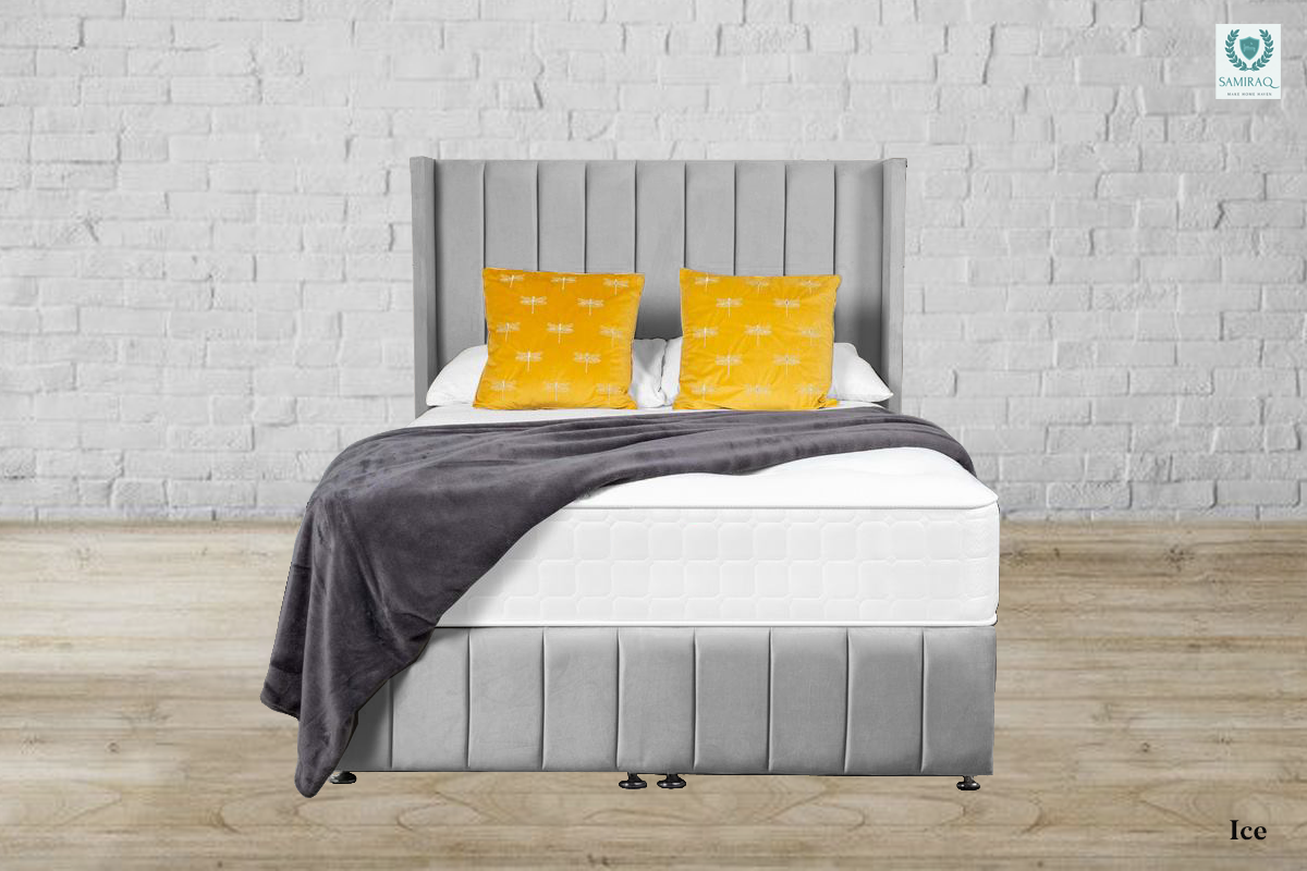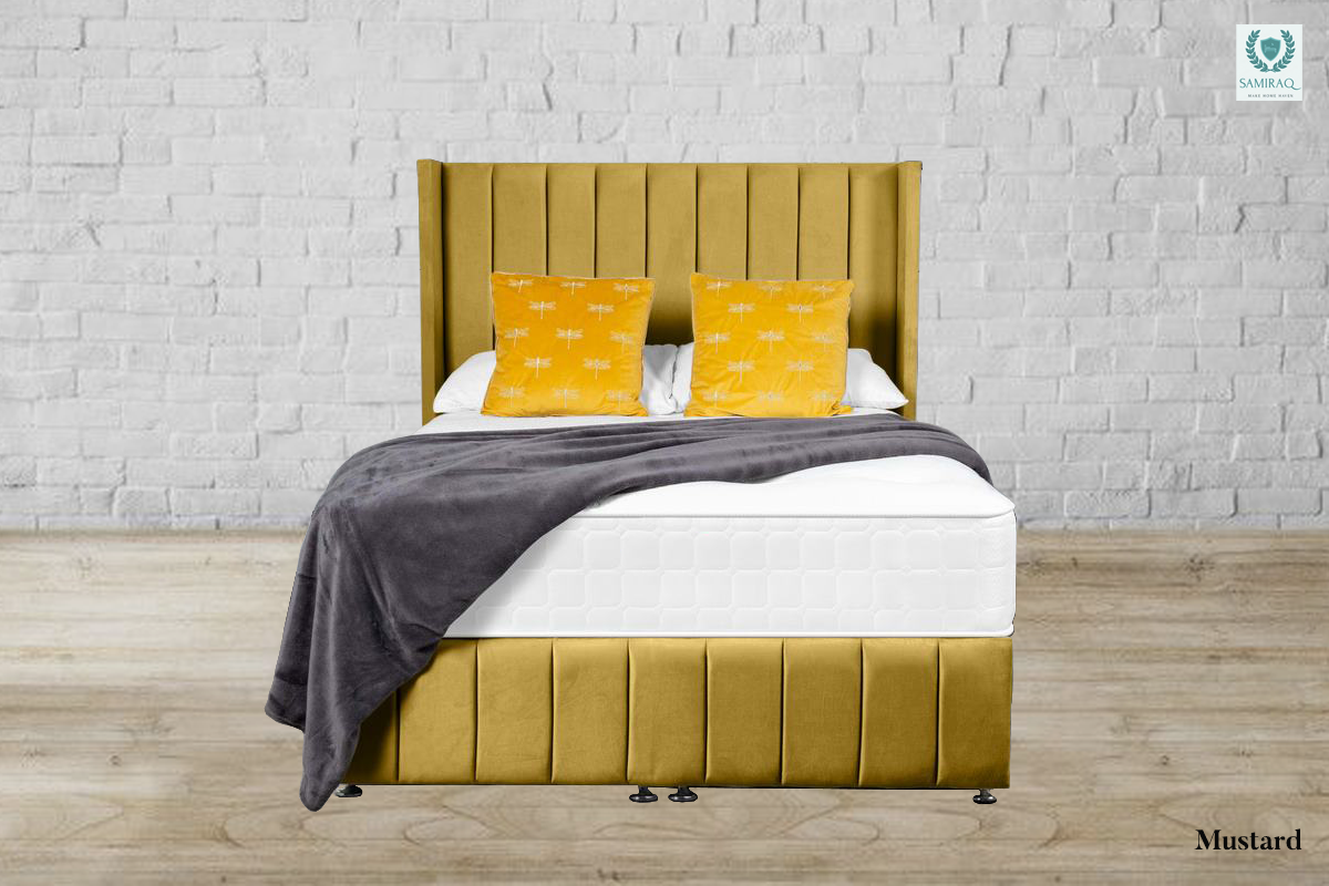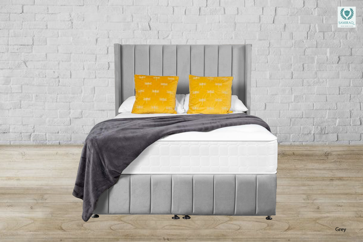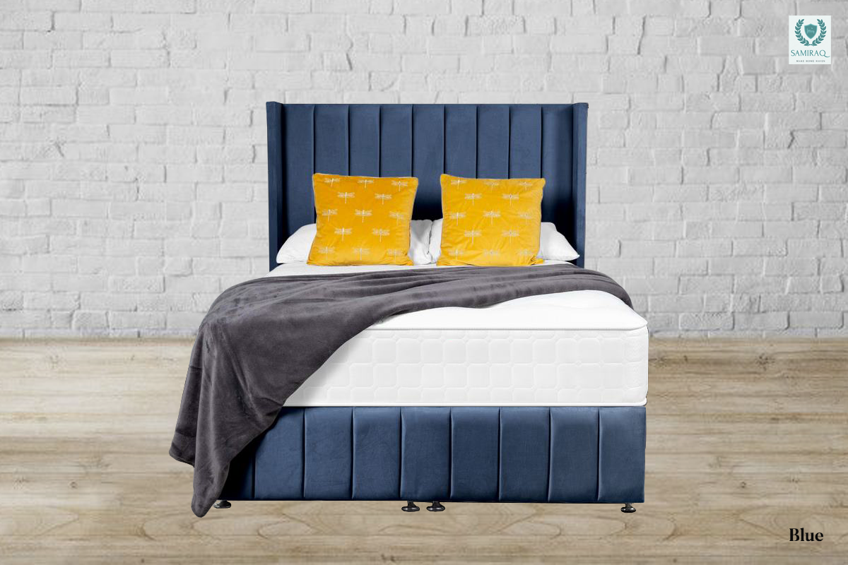 Enjoy your night’s sleep with this Bed. Crafted with plush velvet and a custom design to meet your needs. With a chrome feet-solid board base, the bed proves its indestructibility.